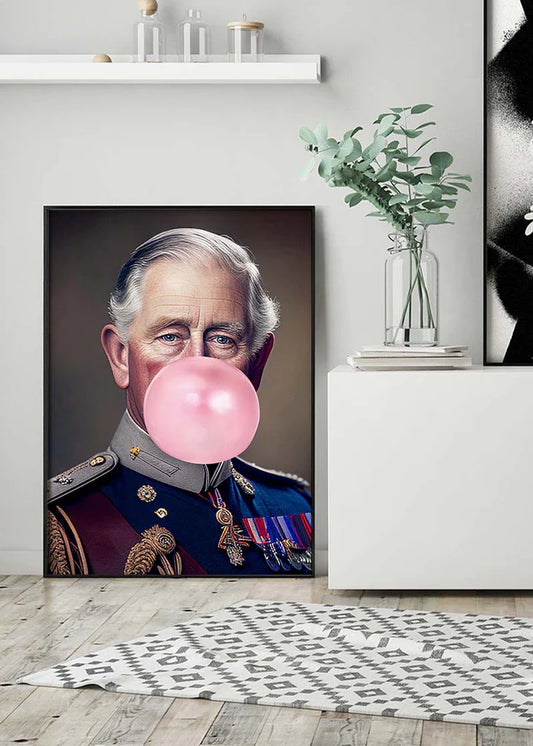 King Charles III Blowing Bubblegum Print