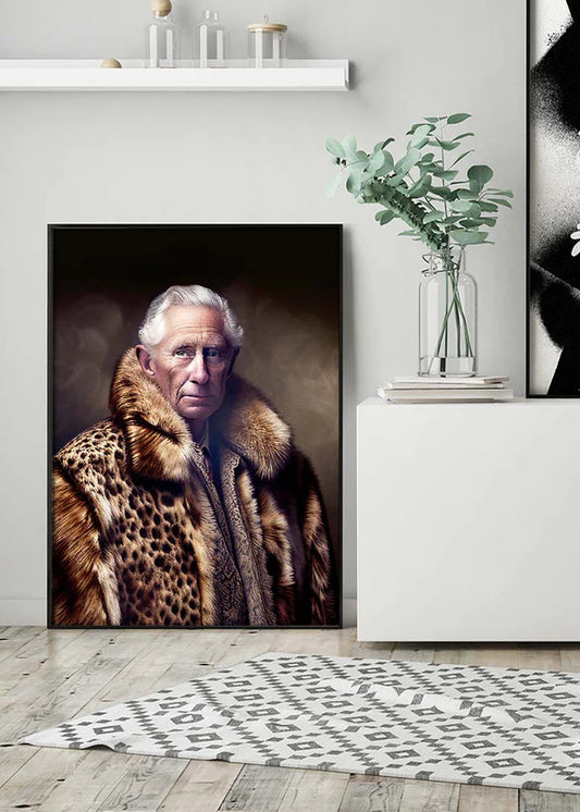 King Charles III Leopard Fur Coat Print