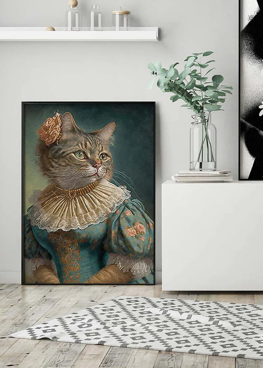 Tabby Cat Lady Animal Head Portrait Print